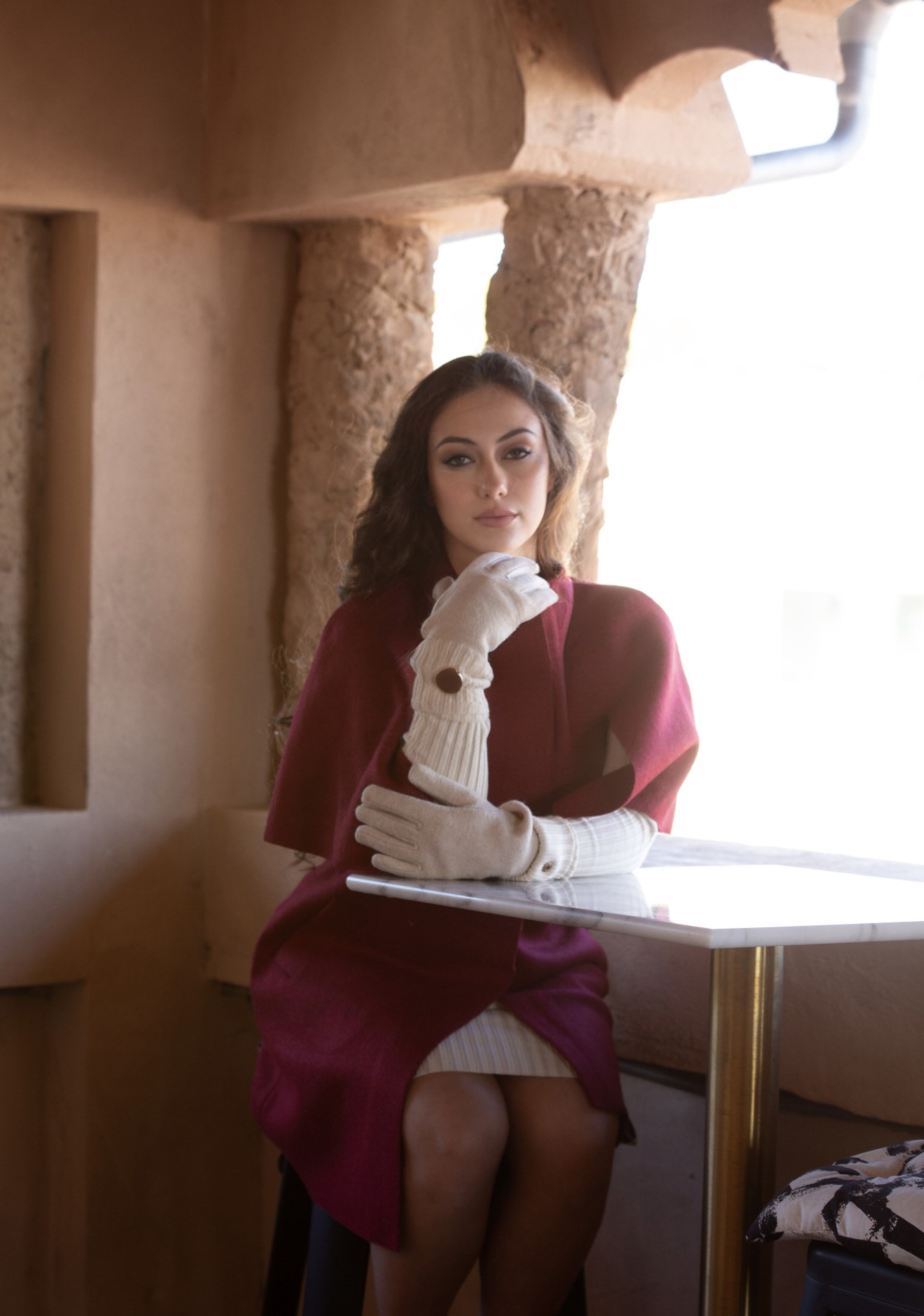 Pensando en la elegancia y la comodidad hemos fusionado el confort de las capas y la sofisticación de los abrigos para crear nuestro modelo Dania Cape, ideal para tu estilo confortable y lujoso que quieres mostrar a los demás, detalle de mangas en corte de capa y cuello nerú. Composición: 60% Baby alpaca 40% Lana